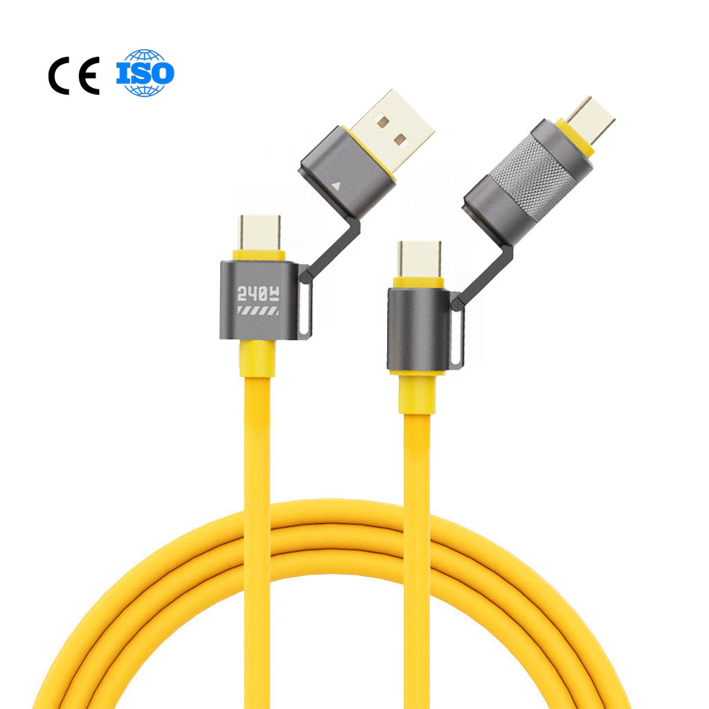 Silicone Fast Charging 4 in 1 Usb Charging Cable Data Transfer Multifunction Data Cables for Phone Charging PD240w