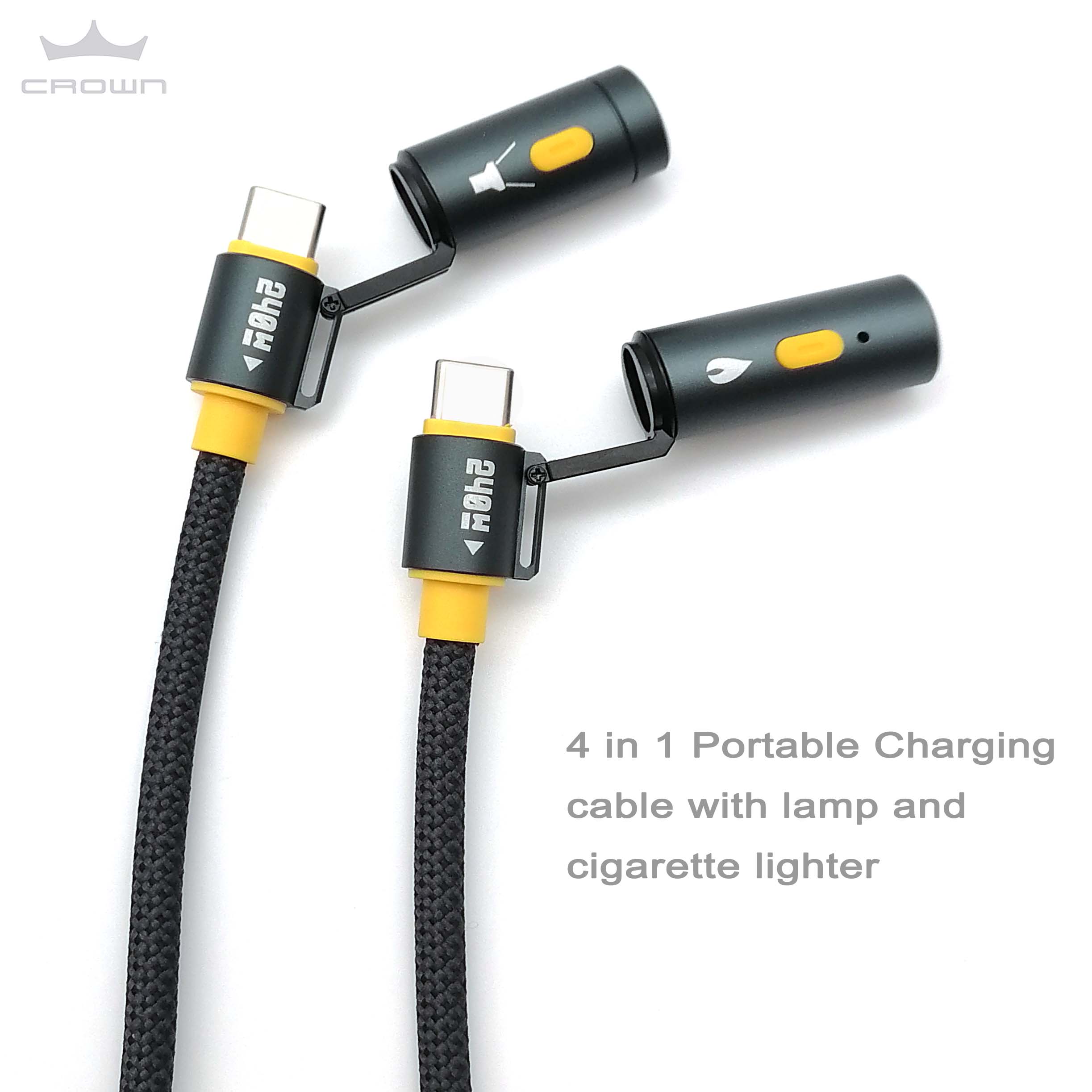 Wholesale 6 in 1 Fast Charging Cable With Outdoor Camping Flashlight and Fire Starter Type C to 8PIN Connectors